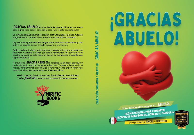 ¡GRACIAS ABUELO! es un libro creado como un homenaje personalizable para reconocer el cariño, la guía y la sabiduría que los abuelos transmiten a lo largo de la vida. Redactado en español de México como un regalo íntimo y único que convierte los recuerdos compartidos en palabras llenas de significado.