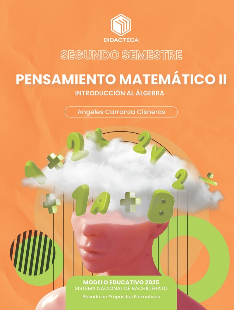 Libro de texto para el Sistema Nacional de Bachilleratos que busca que los estudiantes reconozcan y entiendan el lenguaje algebraico como un medio de representación de situaciones de la vida diaria. Se revisan temas como monomios, binomios, trinomios y polinomios, así como su aplicación en diferentes áreas de conocimiento.