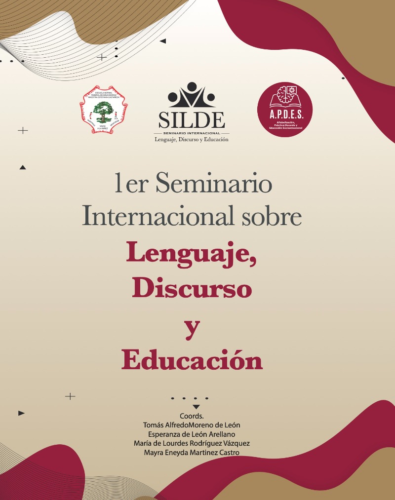 Autor:Moreno de León, Tomás Alfredo; De León Arellano, Esperanza; Rodríguez Vázquez, María de Lourdes; Martínez Castro, Mayra Eneyda; Rangel Charles, Dariana Michelle; Yama Uc, José Edier; Rodríguez Portes, Diana Azeneth; De la Rosa Noriega, Airam Margarita; Barrera García, Dulce María; Ávalos Cárdenas, Katya Paola; Morales Vargas, Yuritzi Janette; Aldape Limas, Ana Yatziri; Ibarra García, Lesly Vanessa; Pérez Bautista, Lezly Yamili; Miranda Hernández, Rocío Itzel; Pérez Tabullo, Deni; Luis Valladares, Miguel Ángel; Aguillón Mata, Ana María; Hernández Navarro, Edna Guadalupe; Delgado Espinoza, Yenifer; Lombera Grimaldo, Damaris Itamar; González Cedillo, María Fernanda; Najera Villanueva, Paola Lizbeth; Meráz Muñiz, Paola Itzel; Toribio Sánchez, Elizabeth; Piñón Raga, Gladis Alicia; Gloria Banda, Nallely Carolina; Villarreal Hernández, Katty Wendolin; Ezqueda Charles, Karla Paulina; García Aguilar, Marisol; Estrada García, Danna Monserrat; Salazar Castillo, Alejandra Guadalupe; Valentín Hernández, Antonia Arely; HerSeminario internacional sobre lenguaje, discurso y educación
