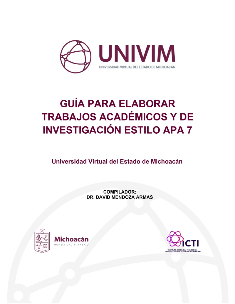 Autor:Aguilar Mendoza, Nora; Amilpas García, Mónica Susana; Barreto Ávila, Magali; Bernal Pérez, Rolando Javier; Cervantes Navarrete, Juan Carlos; Chapa Romero, Ana Celia; Chibici-Revneanu Ba Ma, Claudia Christina; Colmenares Vázquez, Ligia; Damián Bernal, Angélica Lucía; De la Peña del Ángel, Lorena Gabriela; Enríquez Rosas, María de Lourdes; Fernández García, María Victoria Leonor; Fiel Rivera, Amelia Guadalupe; García Gálvez, Guadalupe Dalia; García Velázquez, Luis Miguel; García Vigil, María Hortensia; Garrido Morales, Carolina; Gómez León, Cinthya; Góngora Jaramillo, Gema; González Bazúa, Alejandra; González Cano, Enrique Alejandro; González Saravia, Sofía; Gutiérrez Cruz, Edith; Hernández Crespo, Tania Jimena; Herrera Aguilar, Eunice; Ibarra Hernández, Eva Krystel; Ibarra Rojas, Elena Alejandra; Landeros Alvarado, Paulina; Loza Vaqueiro, María Isabel de Lourdes; Luna Medina, Nicté Yasmín; Manrique Ascencio, Diana Alejandra; Martínez Trápaga, Paulina; Medina Arzate, Alejandra Lidia; Mendoza González, Mónica AdGuía para elaborar trabajos académicos y de investigación estilo APA 7