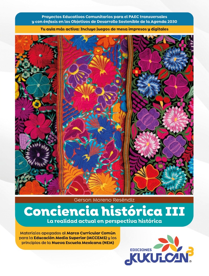 El libro Conciencia Histórica III busca que los estudiantes comprendan los procesos históricos a partir del análisis crítico de fuentes, hechos y contextos. Su enfoque promueve la reflexión sobre la identidad, la memoria colectiva y los cambios sociales a lo largo del tiempo. Mediante proyectos, líneas del tiempo y estudios de caso, los alumnos relacionan el pasado con el presente para interpretar su realidad. El material fomenta el pensamiento crítico, la participación activa y la valoración del patrimonio histórico y cultural.